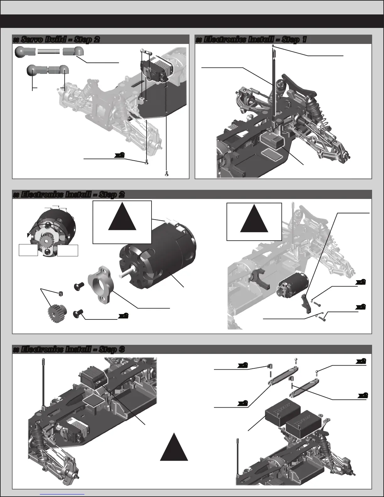 Associated Electrics RC10 B44.2 - Servo and Electronics Installation; Servo Build - Step 2; Electronics Install - Step 1; Electronics Install - Step 2