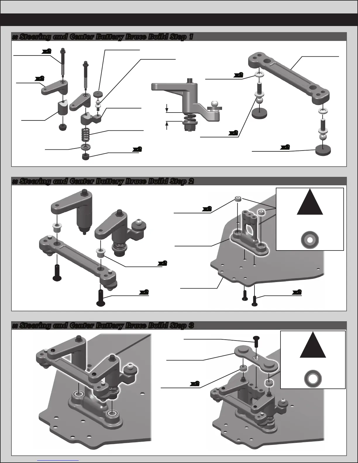 Associated Electrics RC10 B44.2 - Steering and Battery Brace Assembly; Steering & Brace Build - Step 1; Steering & Brace Build - Step 2; Steering & Brace Build - Step 3