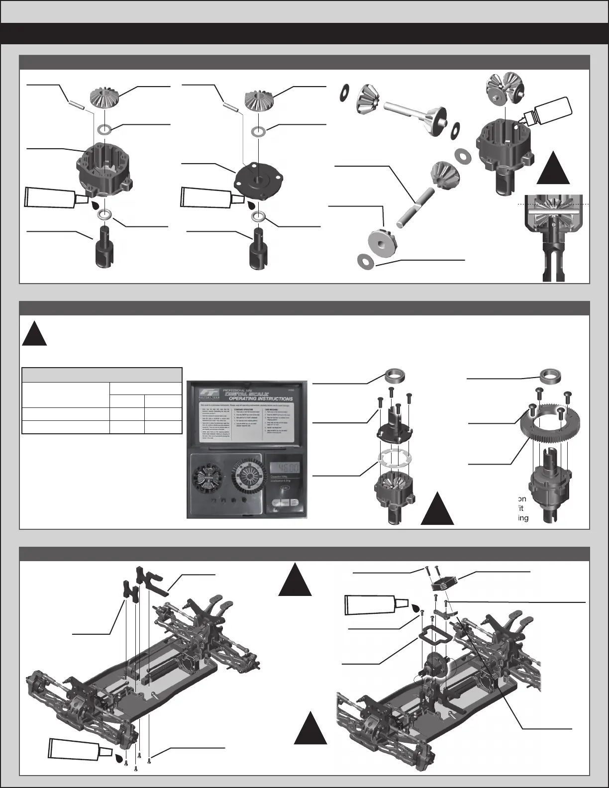 assembly should weigh 43.75g when built. Start by placing the ring gear assembly, screws, and cup