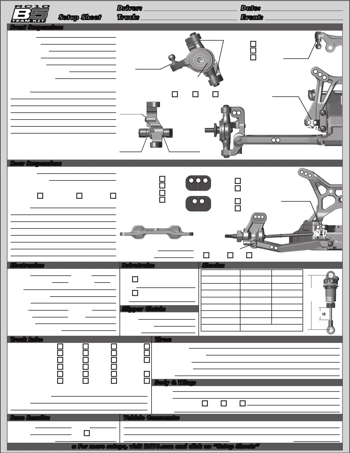 :: For more setups, visit RC10.com and click on “Setup Sheets”