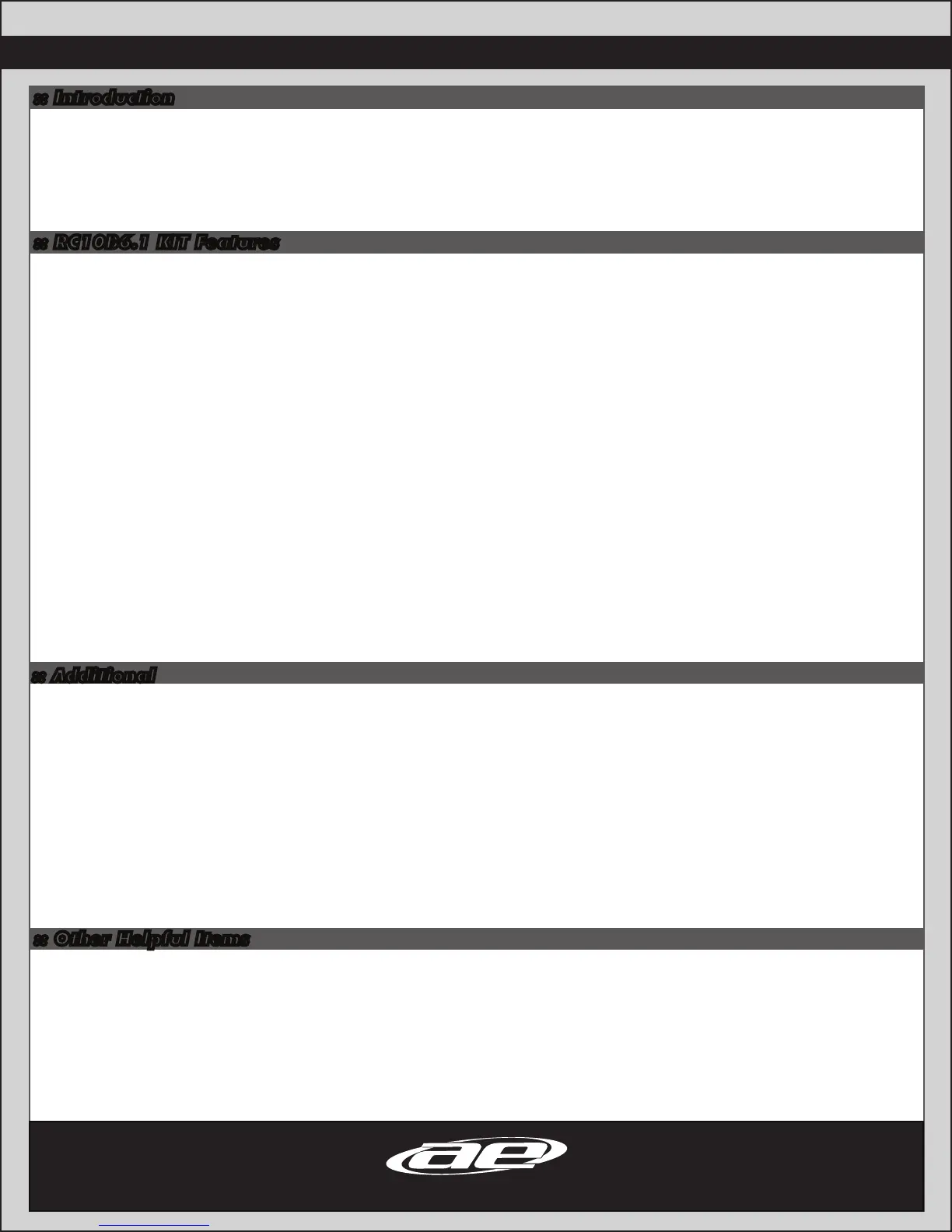 Thank you for purchasing this Team Associated product. This assembly manual contains instructions and tips for building and