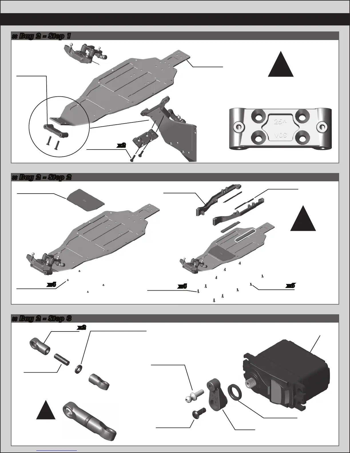 Associated Electrics RC10B6.1 - Assembly Instructions - Bag 2; Step 1: Chassis & Bulkhead Mounting; Step 2: Side Rails & Chassis Weight; Step 3: Servo Mount & Steering Link