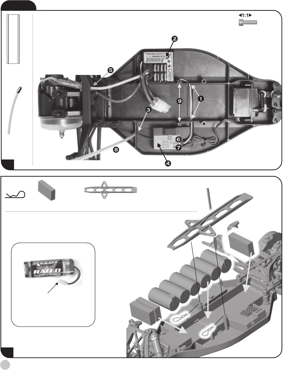 7 . P l u g s t e e r i n g s e r v o w i r e i n t o r e c e i v e r c h a n n e l 1 .