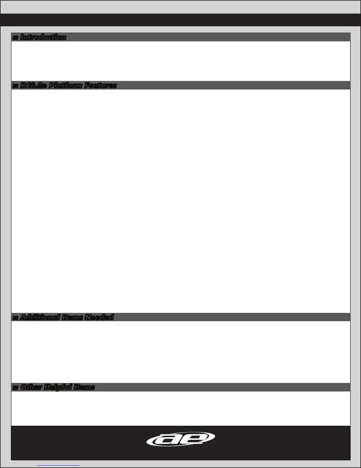 your new RC8.2e RTR. Please take a moment to read through it an familiarize yourself with these steps as they will help you to