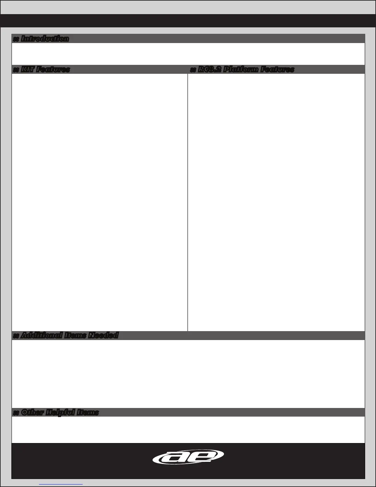you to understand each component’s function and show you some tips for getting the most out of your RC8.2e Factory Team build experience.