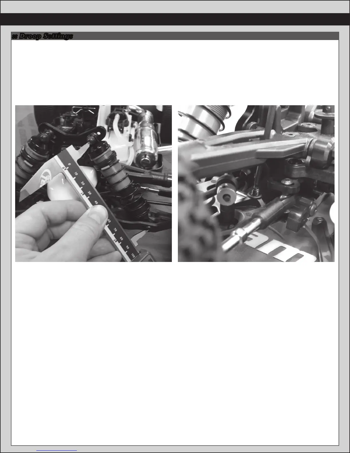 high-speed stability. Remember to never loosen the screws beyond the FULL DROOP setting. Decreasing rear droop