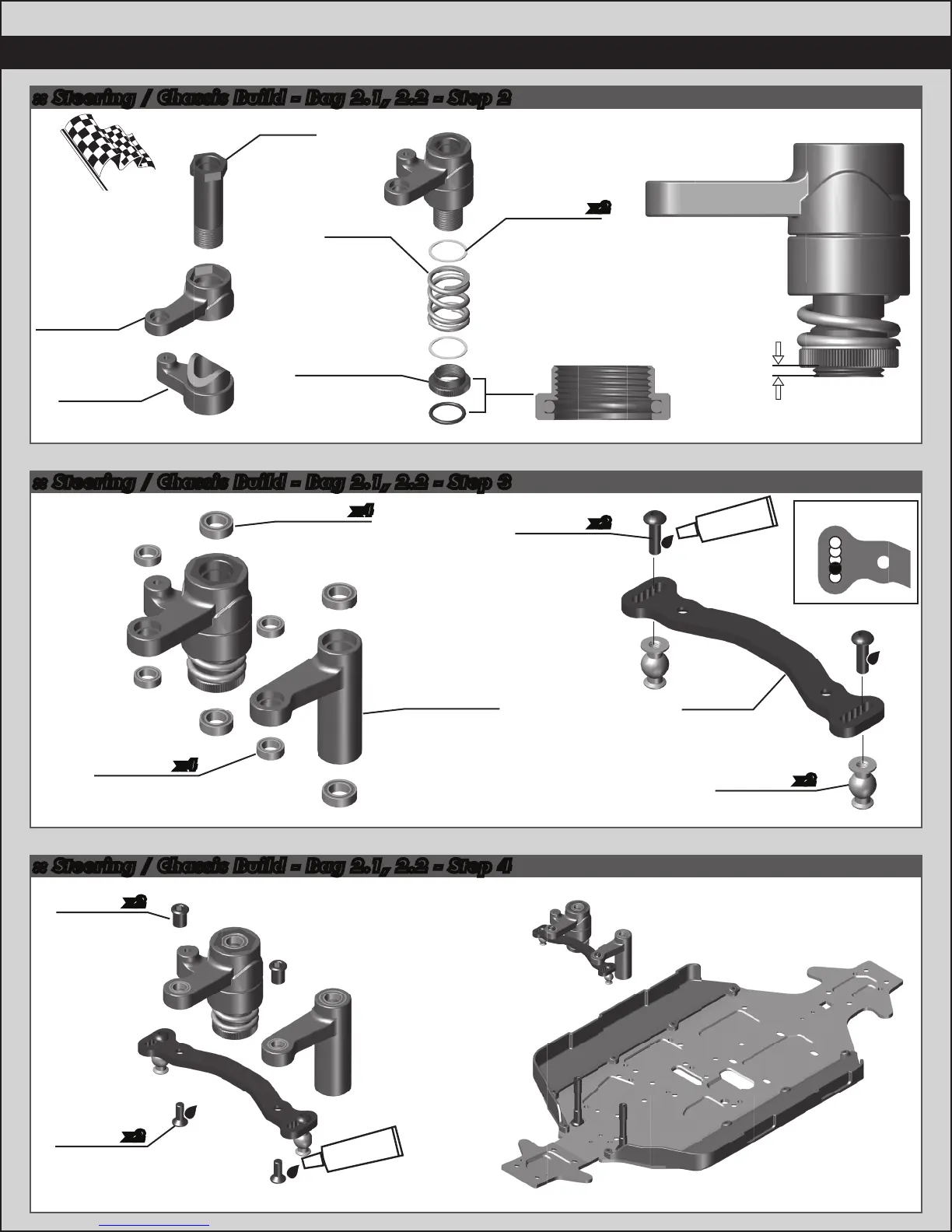 Associated Electrics RC8B3.1 - Steering and Chassis Build - Continued; Steering; Chassis Build - Step 2; Steering; Chassis Build - Step 3; Steering; Chassis Build - Step 4