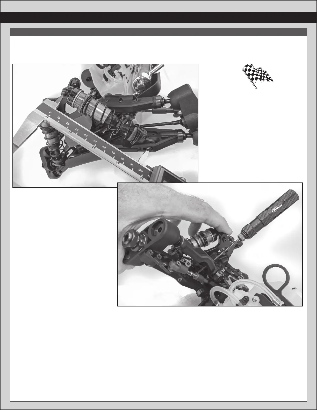 If the shock length is too short, adjust by turning the droop screws counter-clockwise.