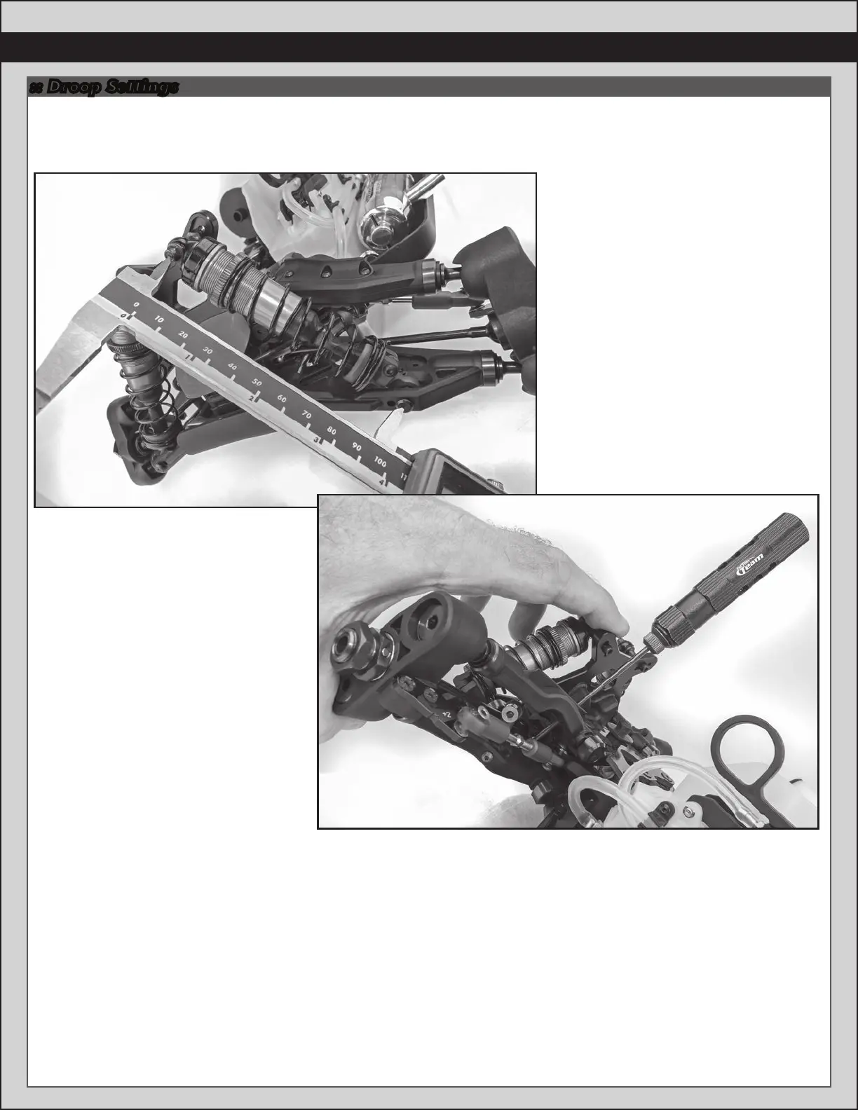 high-speed stability. Remember to never loosen the screws beyond the FULL DROOP setting. Decreasing rear droop