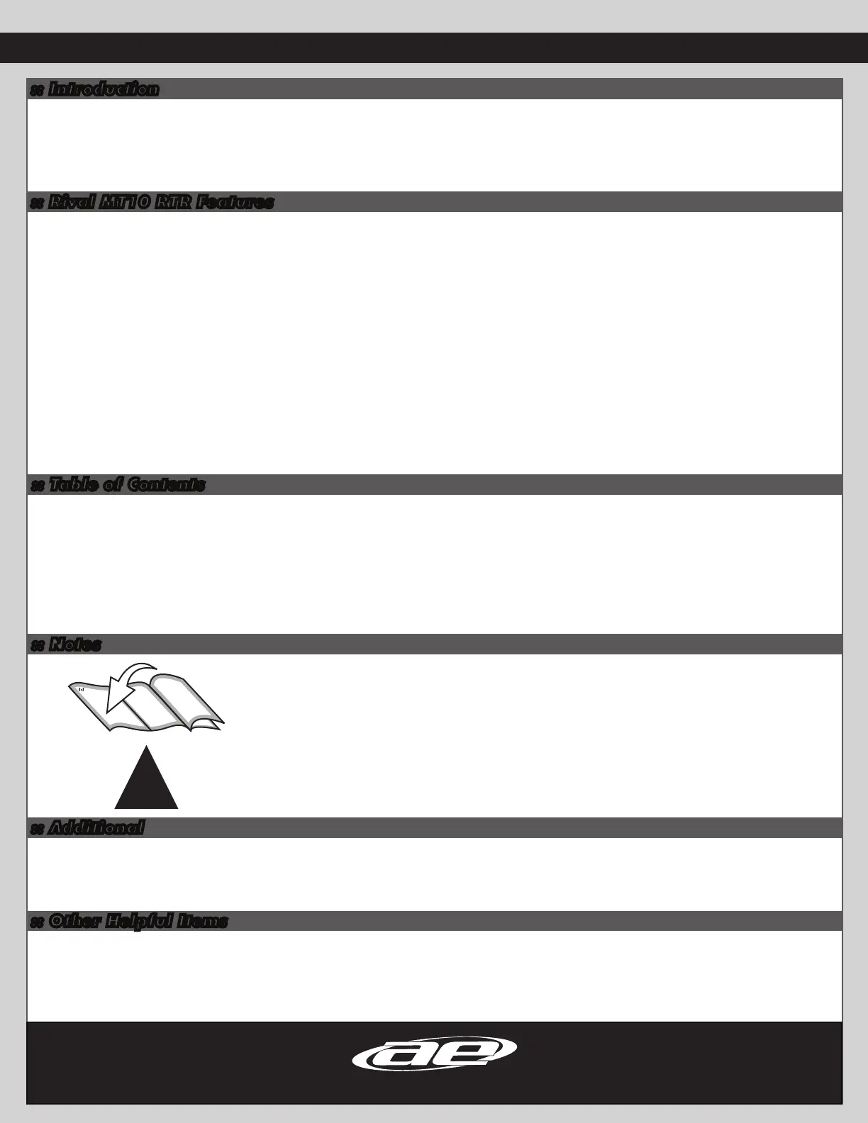 Thank you for purchasing this Team Associated product. This assembly manual contains instructions and tips for building and