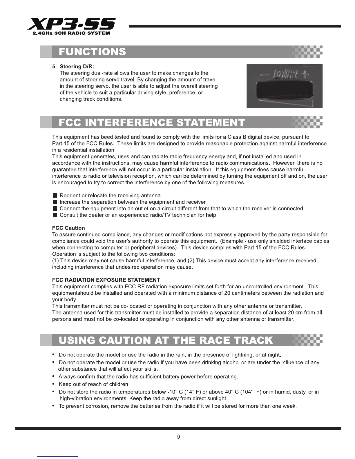 Associated Electrics XP3-SS - FCC Interference Statement; Using Caution at the Race Track; Steering D;R