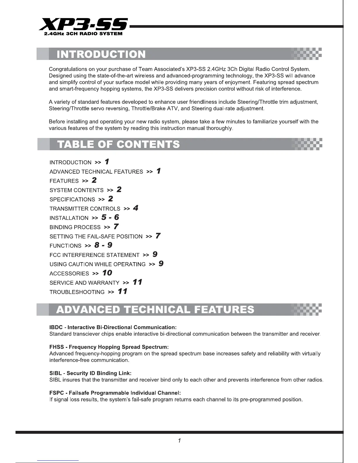Associated Electrics XP3-SS - Table of Contents; Advanced Technical Features