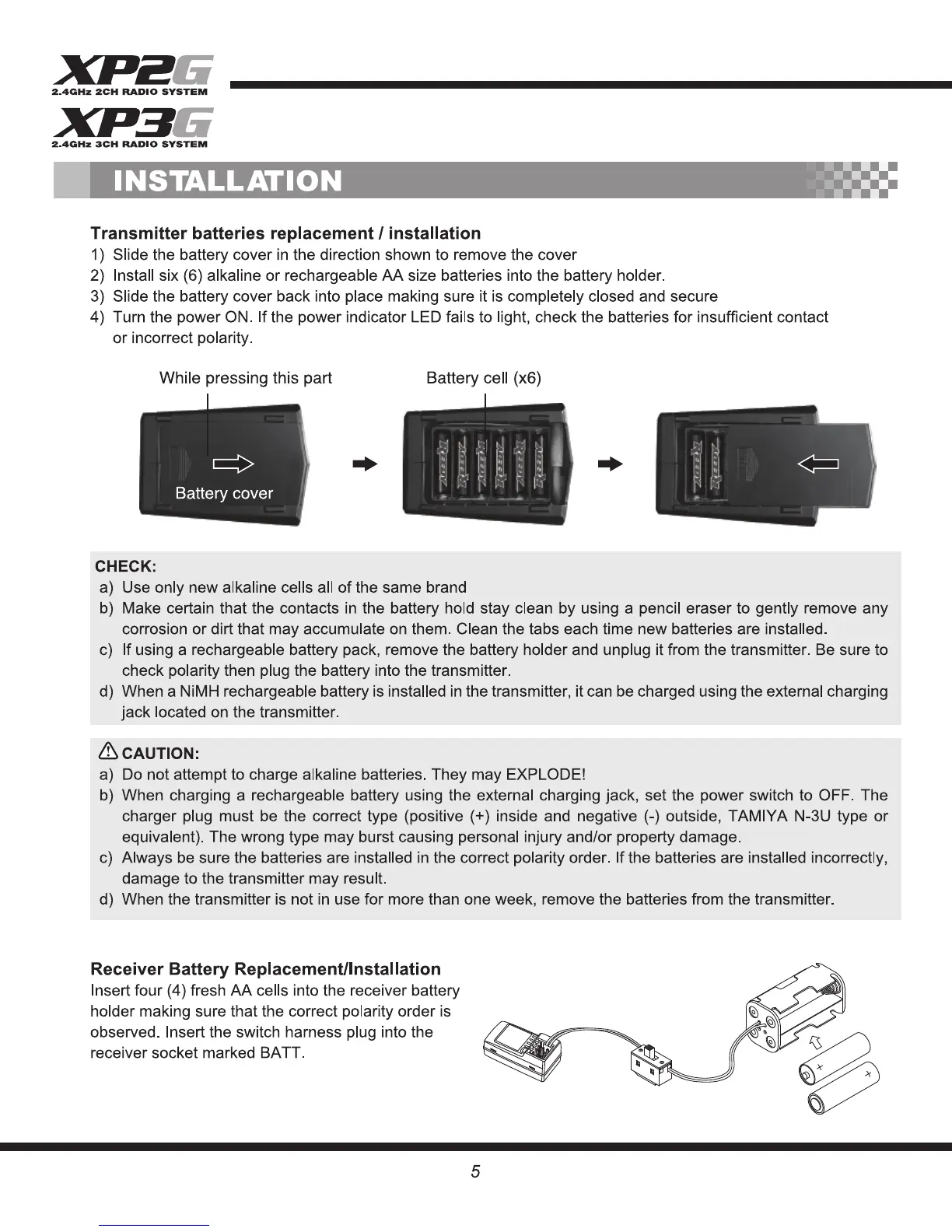 Associated Electrics XP3G - INSTALLATION; Transmitter Batteries Installation; Receiver Battery Replacement;Installation