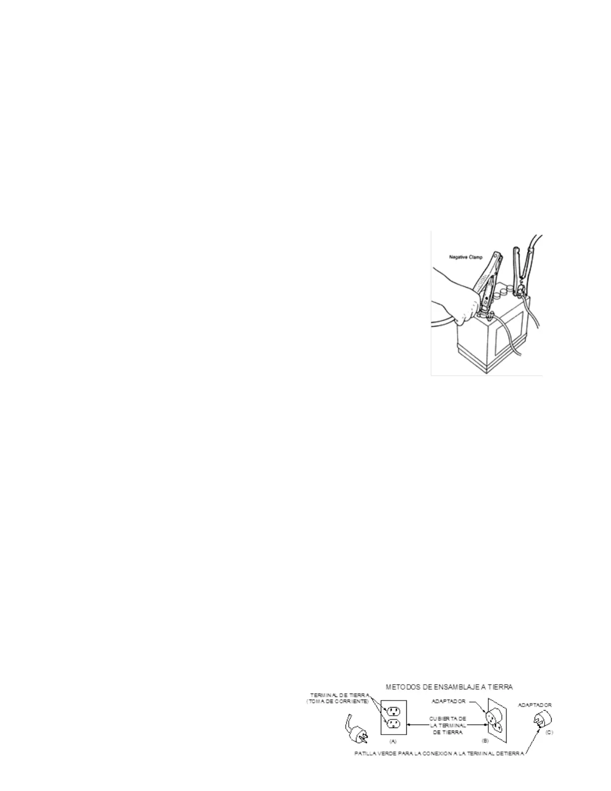 Positiva (Pos,P,+) de la batería. Conecte la pinza negativa (negra) al chasis del vehículo, o parte pesada de metal. No conecte la