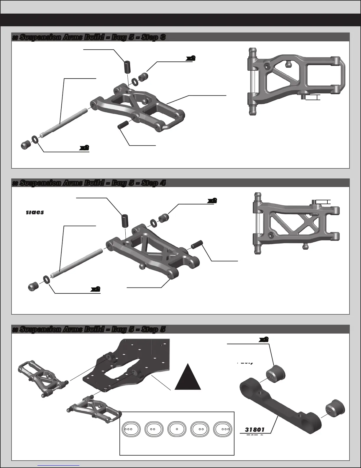 Associated TC7.2 - Suspension Arms Build - Bag 5 - Step 3; Suspension Arms Build - Bag 5 - Step 4; Suspension Arms Build - Bag 5 - Step 5