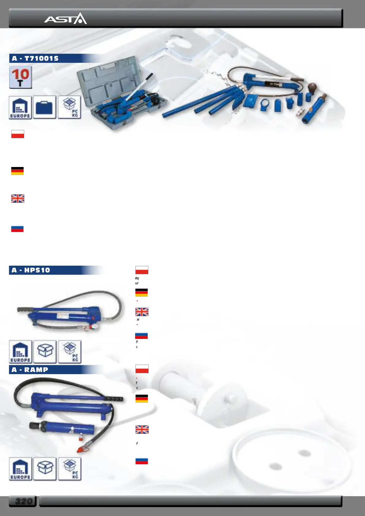 •Hydraulic ram with equipment suitable for repairing car body and when needed static power, like: services, road assistance. •Ram with safety valve • hydraulic oil HYD-22. •Pump working in every position