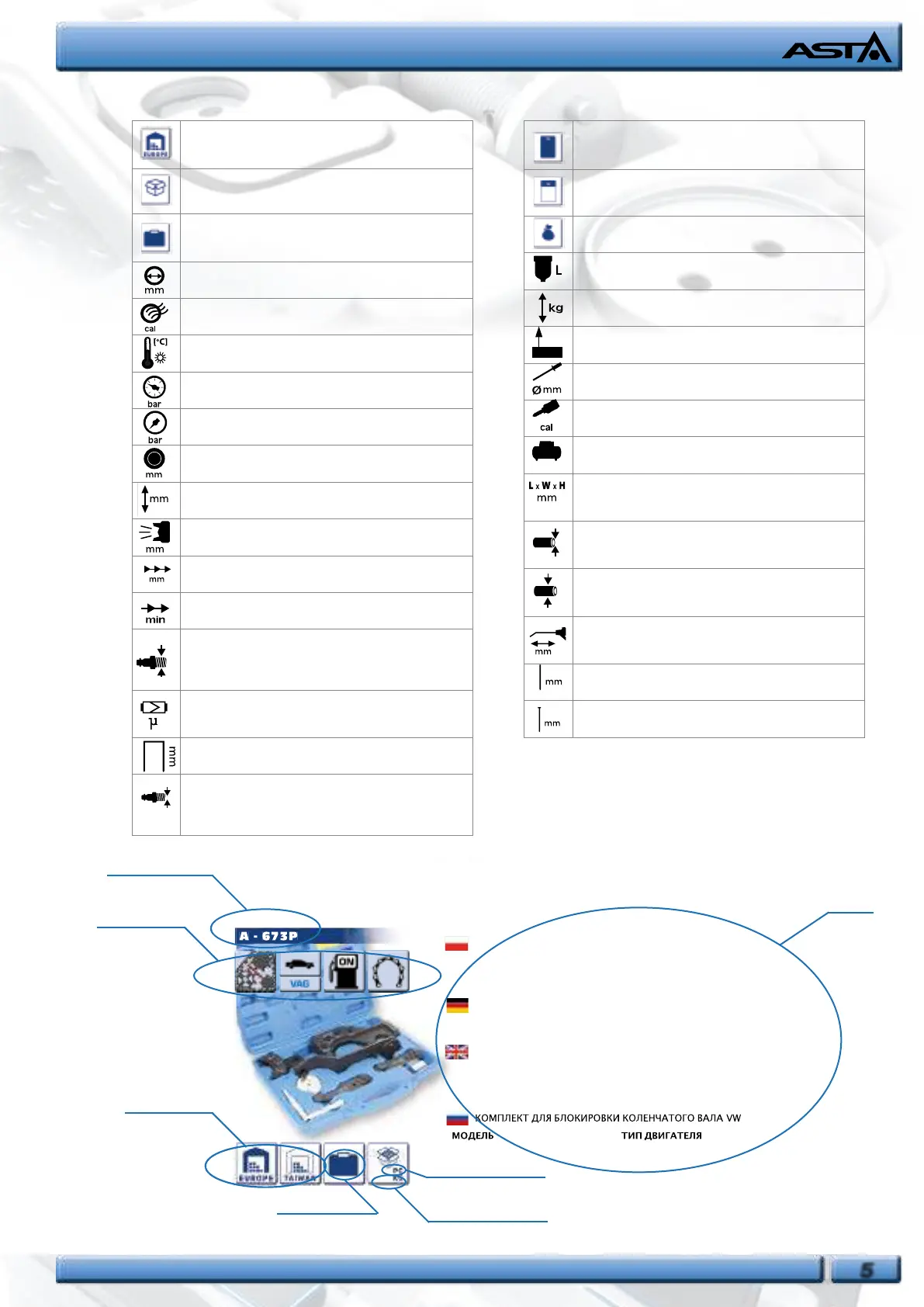 Zestaw umożliwia blokowanie wałka rozrządu w celu przeglądu oraz regulacji. Przystosowany jest także do de/montażu kół rozrządu
