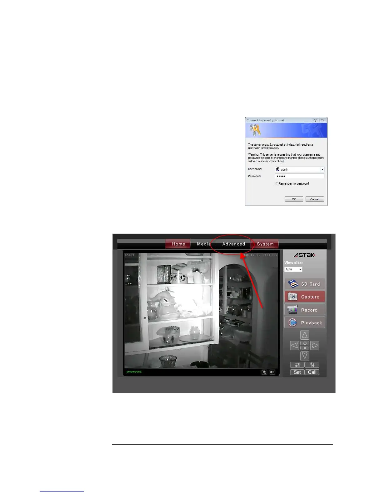 Once your camera interface comes up, select the Advanced tab.