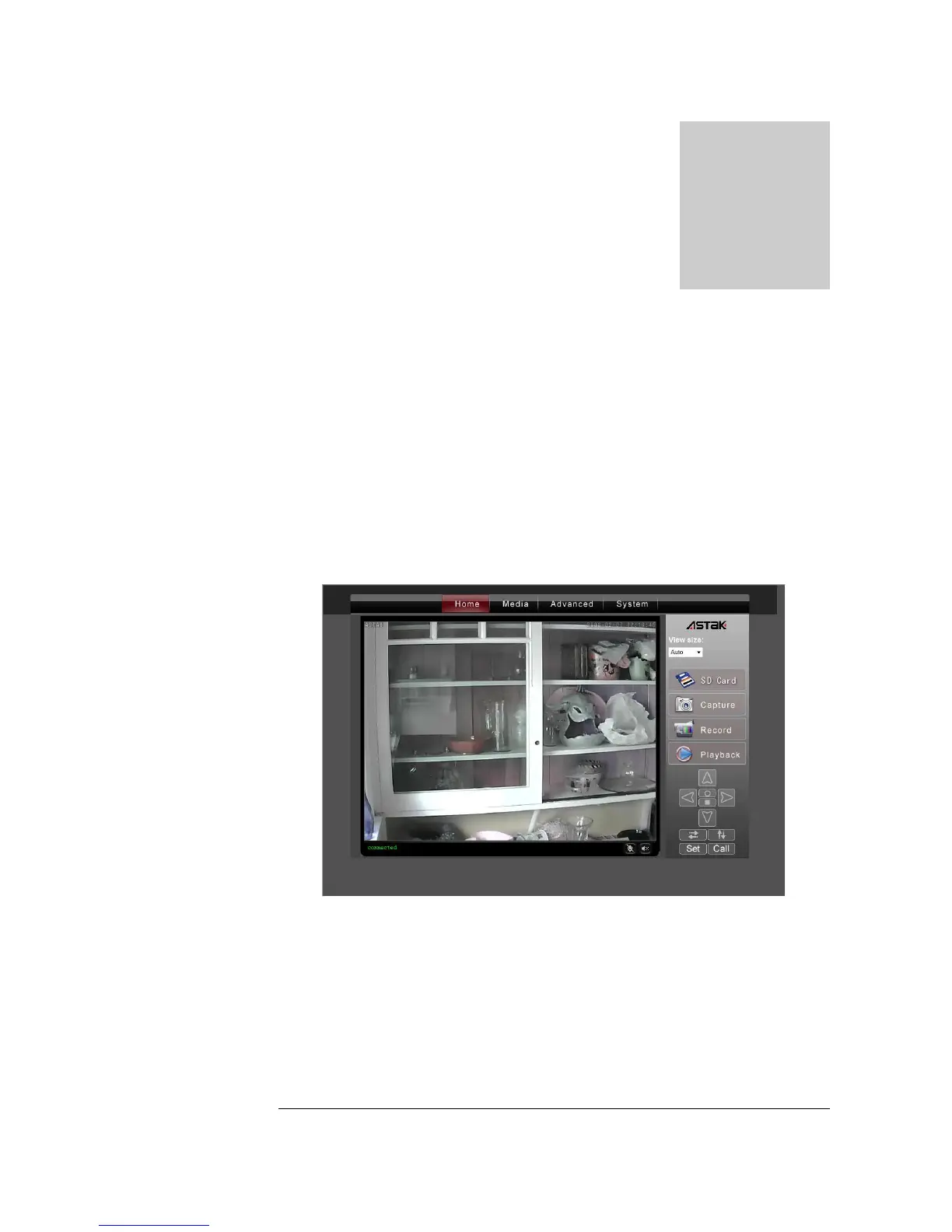 The Home tab is the main view and shows you your camera and provides you access