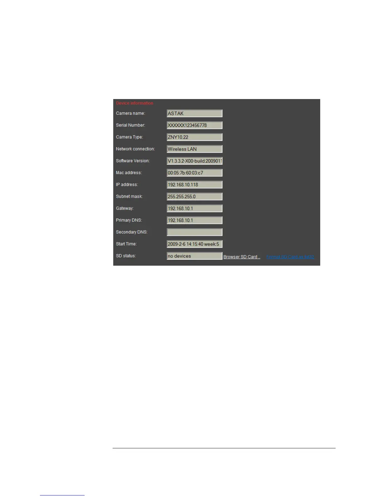 SD status: you can click on the Browser SD Card link to access the contents of your