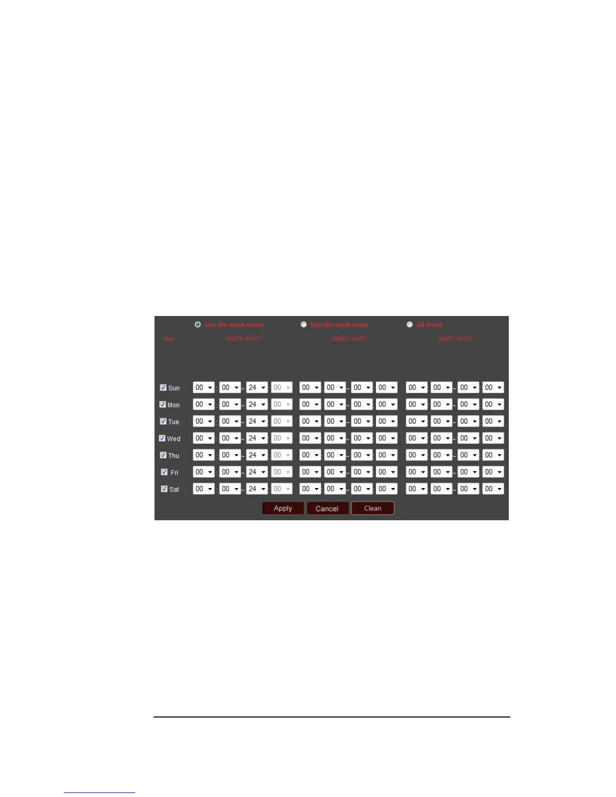 specify up to three different sections of time for each day of the week when you want