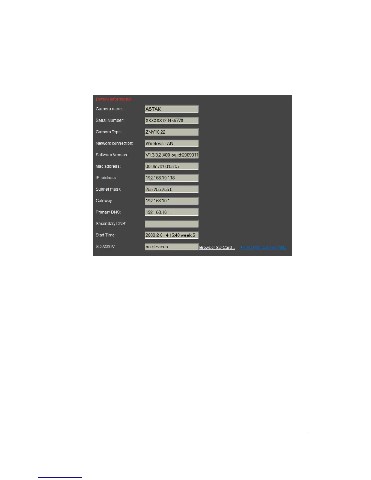 SD status: you can click on the Browser SD Card link to access the contents of your
