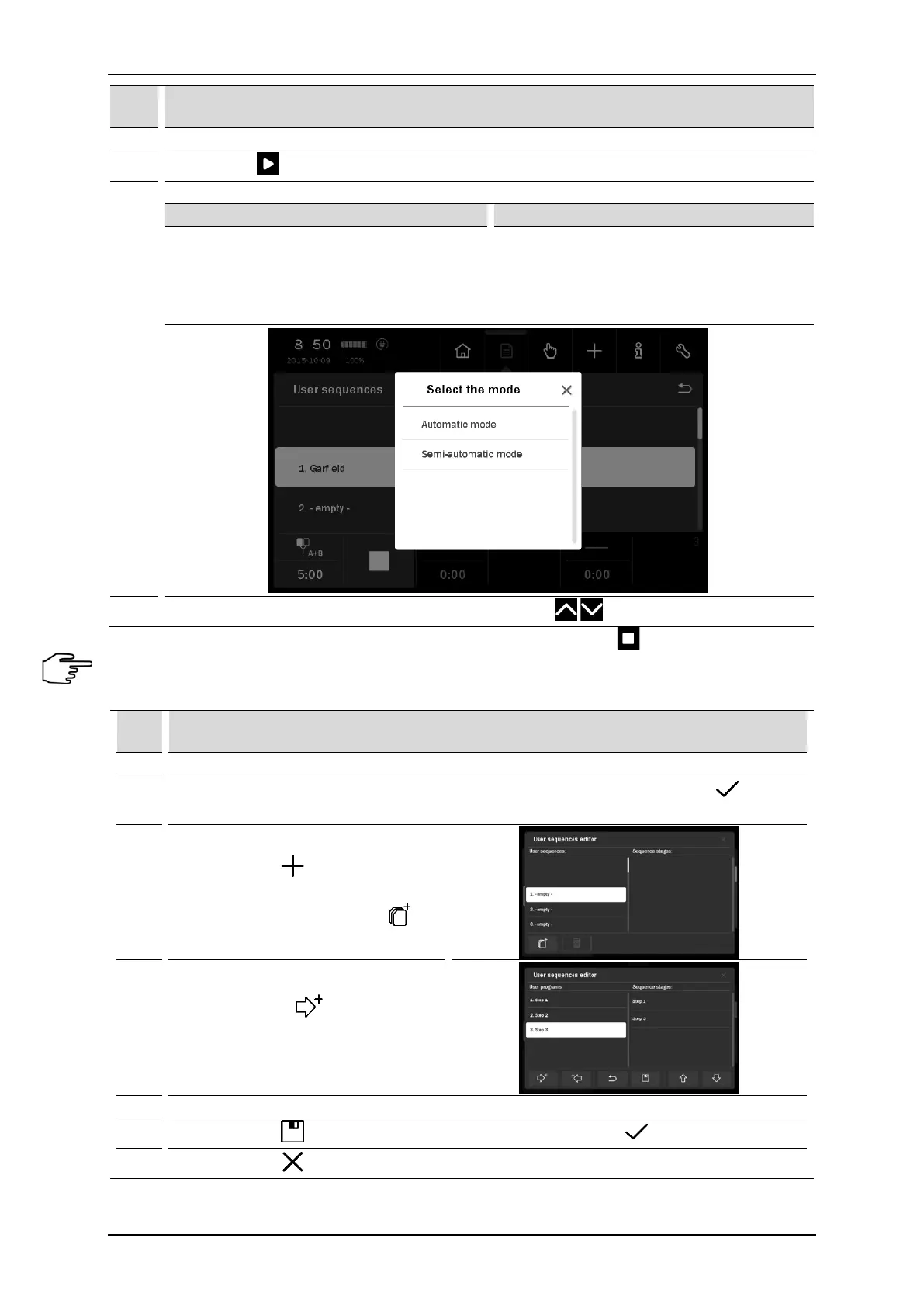 Select the option User sequences from Program modes menu. Confirm by the button or once