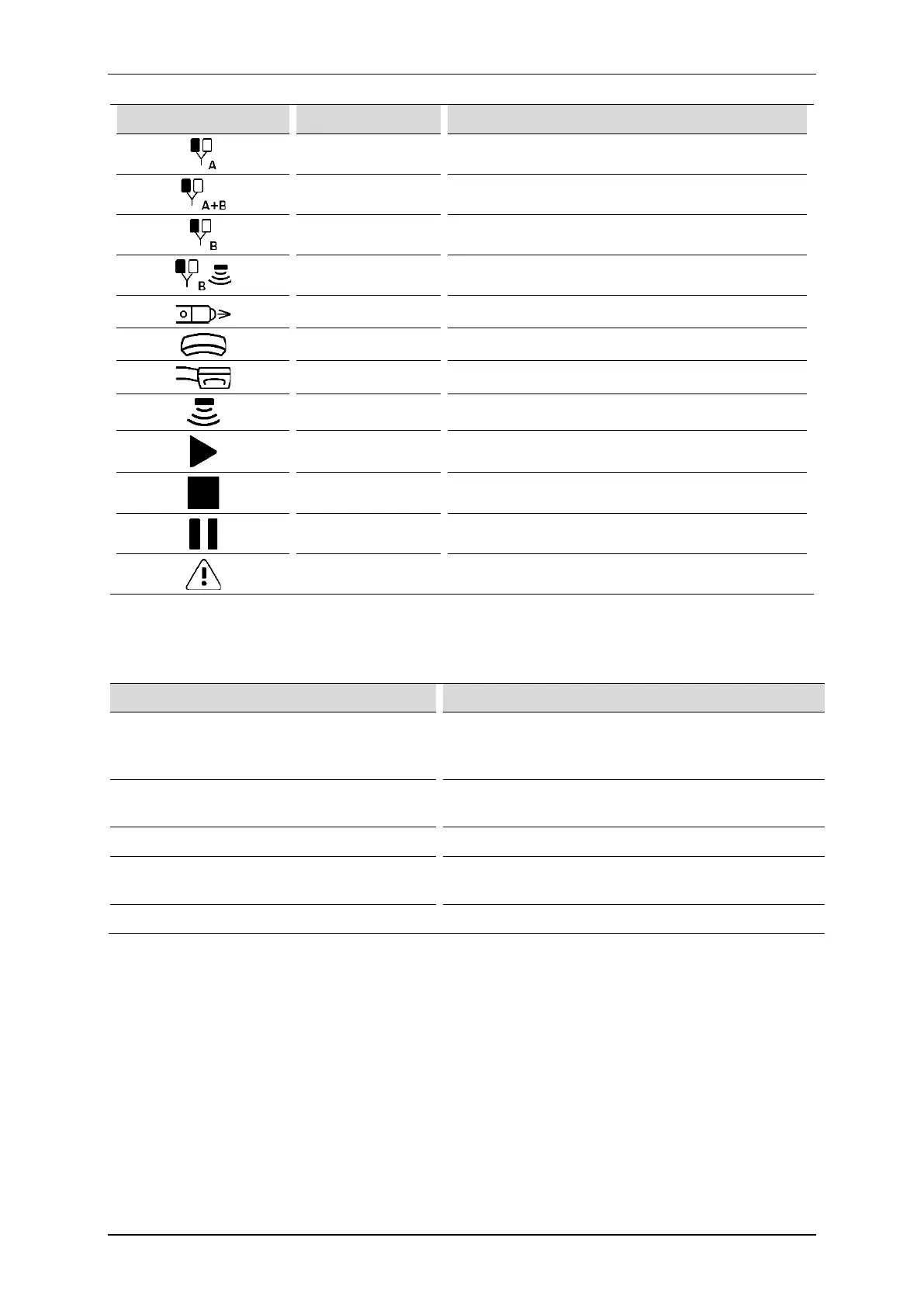 The table below explains the meaning of the symbols presented in tabs: