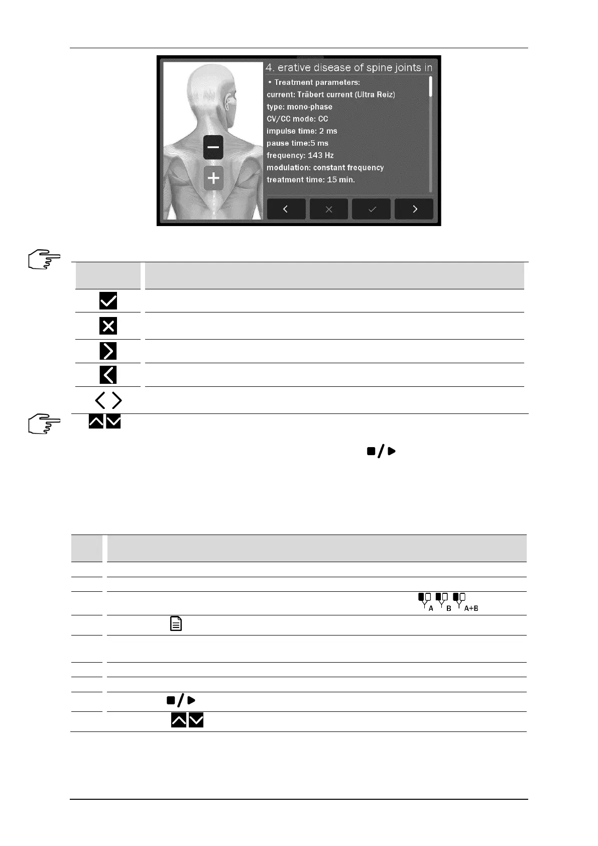 Schematic procedures for electrotherapy are presented below. In continuous operation, it is recommended to
