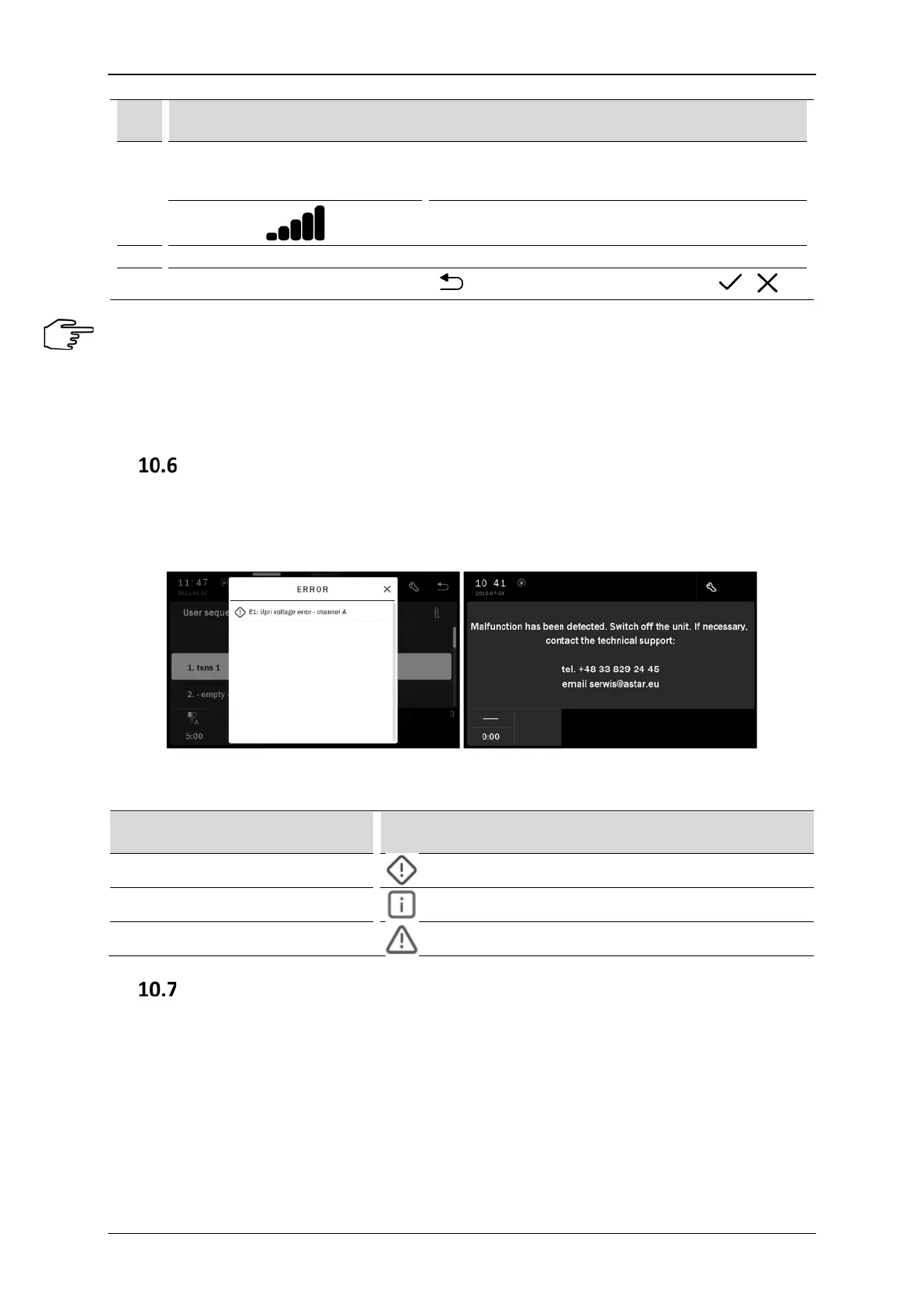 Figure 10.1. The unit error signaling and information visible after closing of the error message