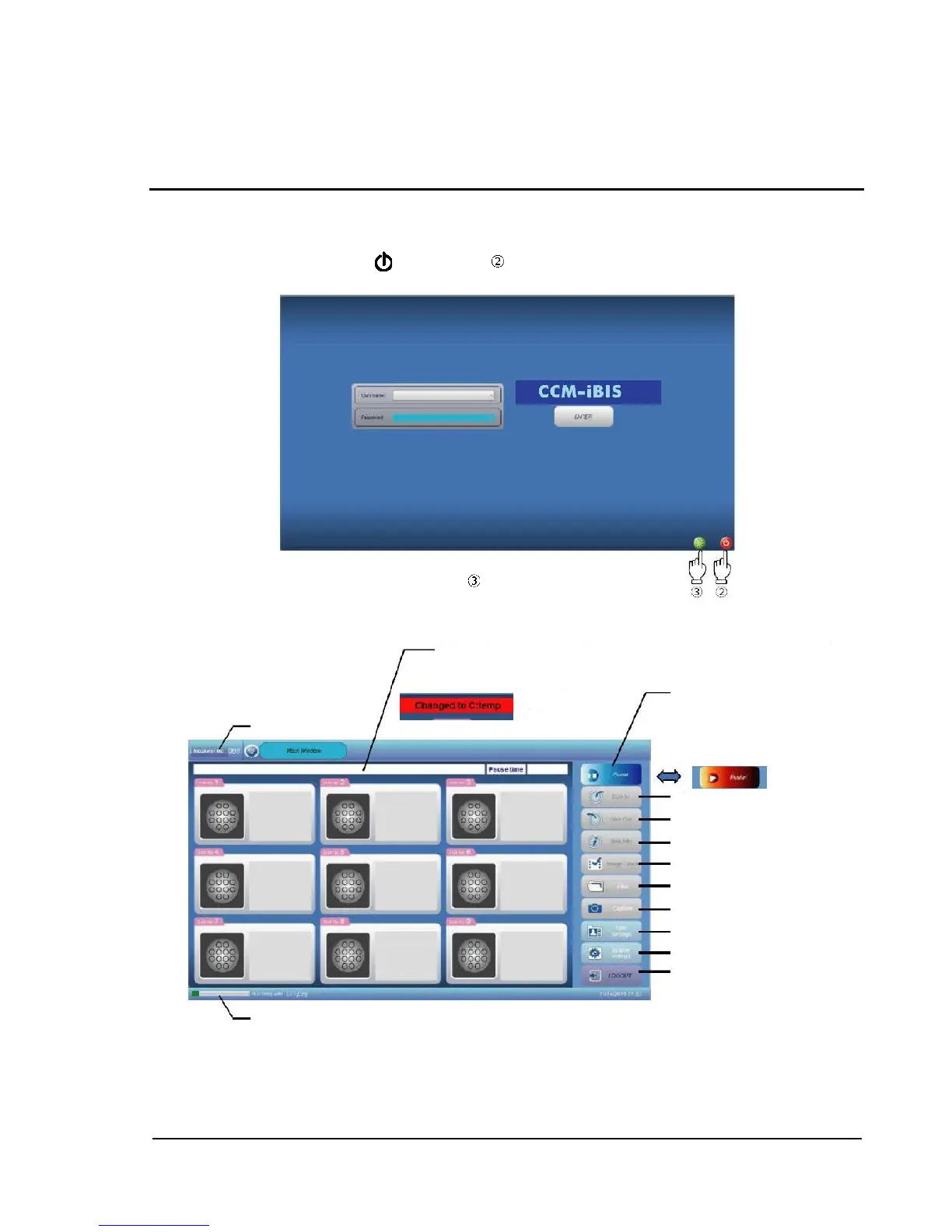 To shut down when in login status, log out first, and then shut down as described above.
