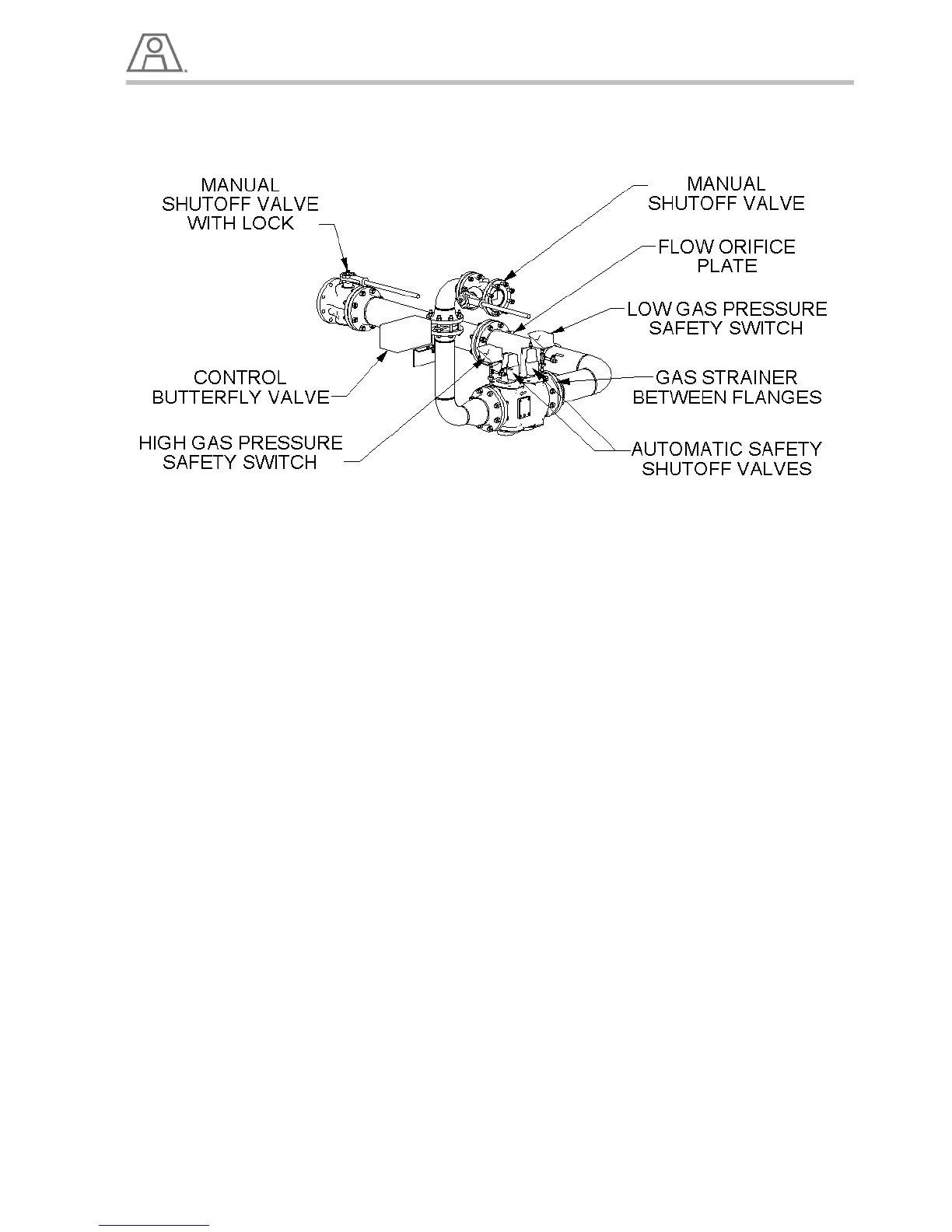 2. The piping from the gas regulator outlet to the burner gas manifold should be sized to minimize