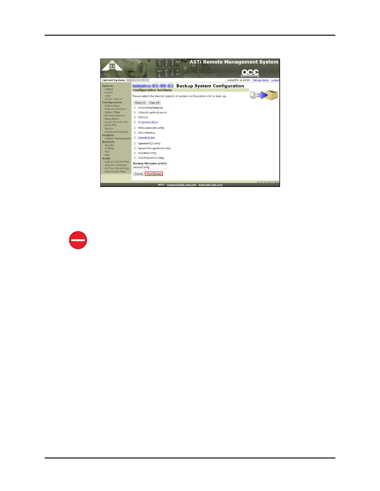 7. Select all or some of the desired configuration options, and click Start Backup.