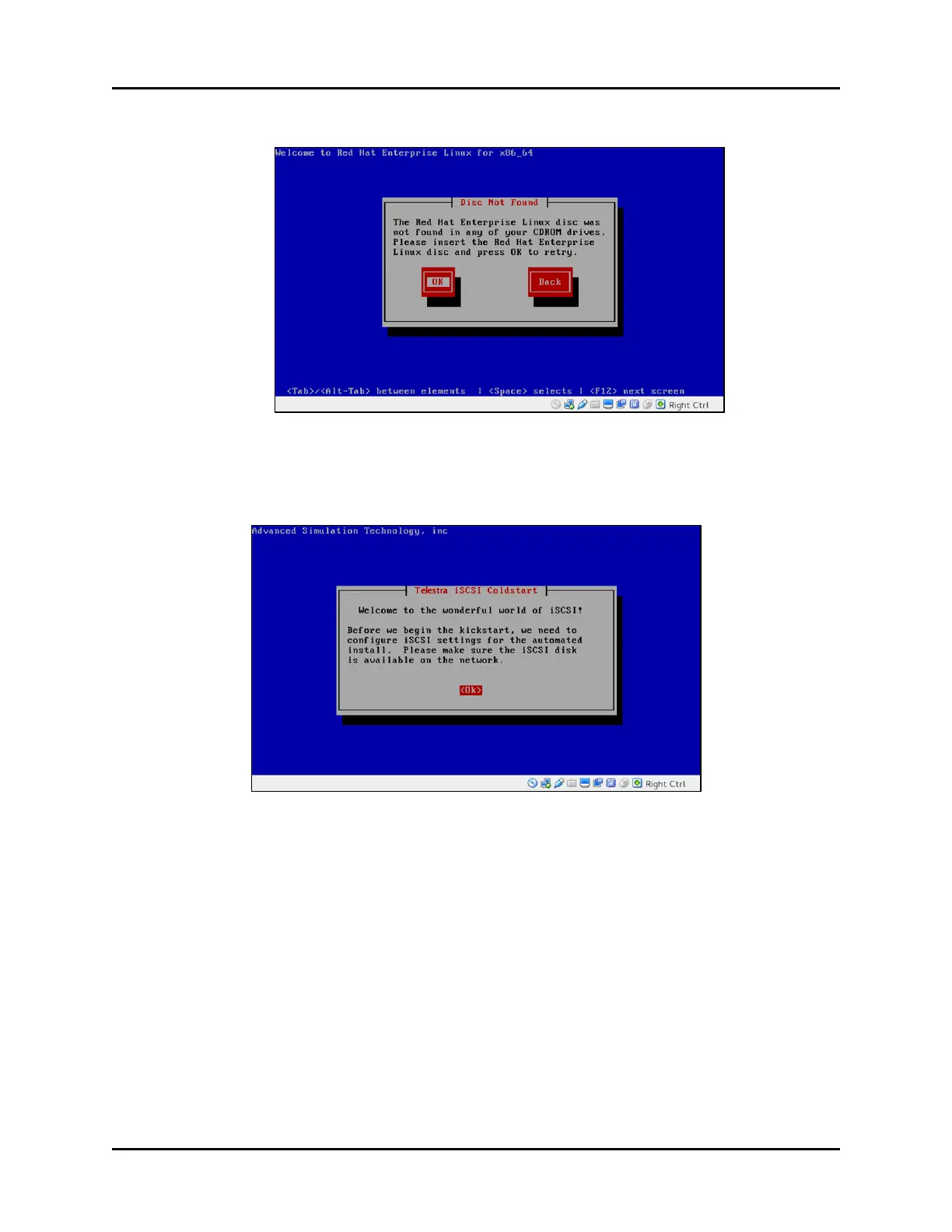 9. The Telestra iSCSI Coldstart welcome message appears. Select <Ok> to continue.