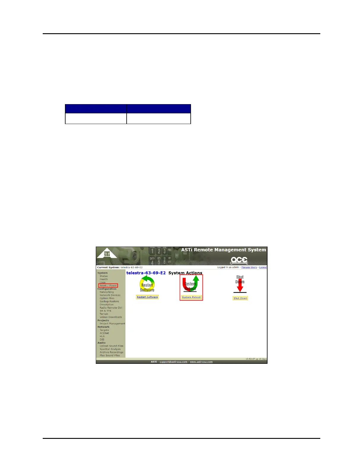 13. On the System Actions page, click System Reboot.