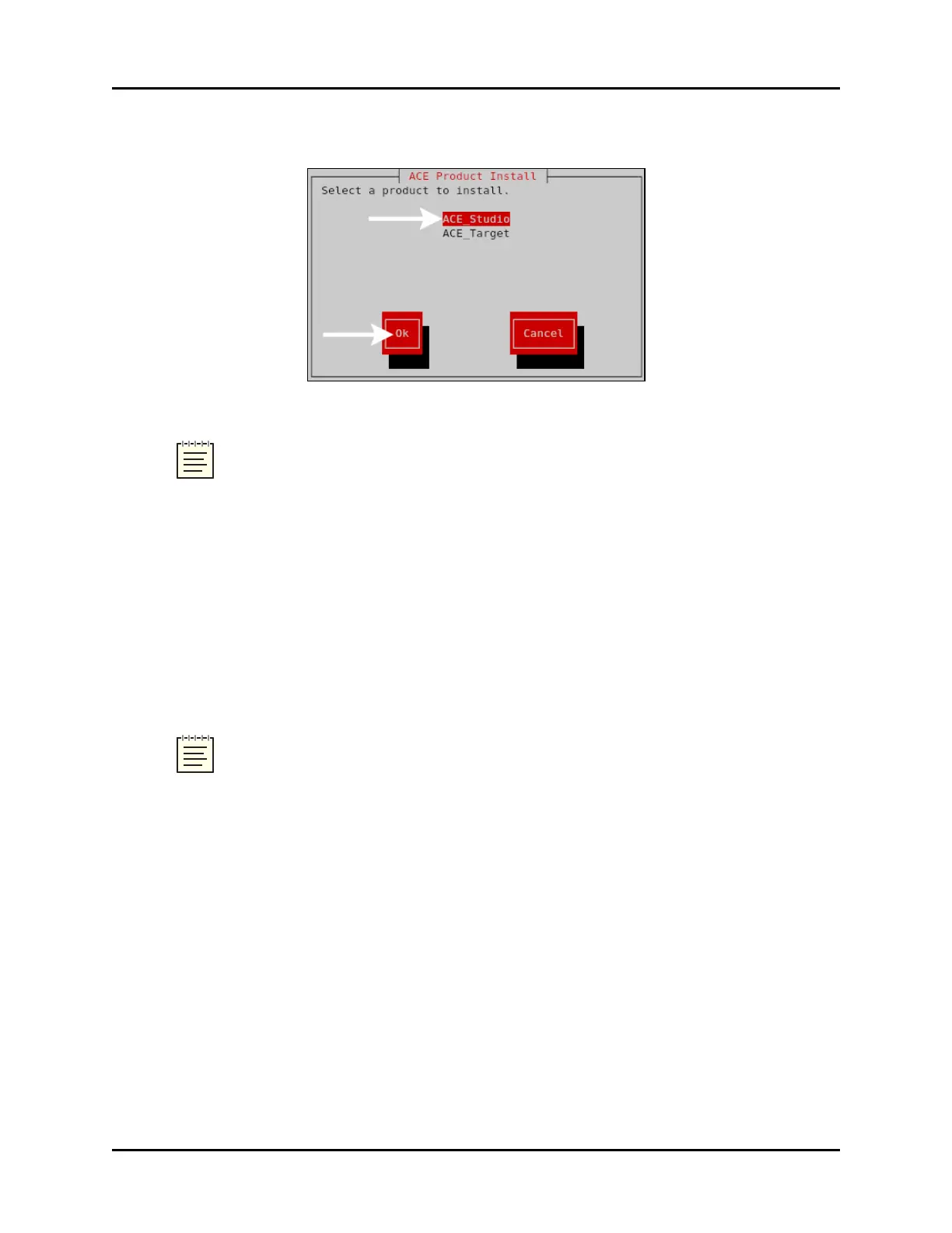 6. The prompt reads, “Select a product to install.” To select ACEStudio, press the Up and