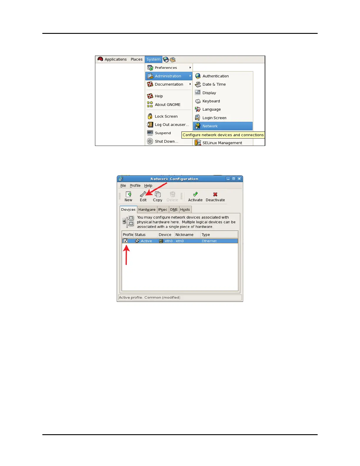 5. From the taskbar, click System, point to Administration, and then click Network.