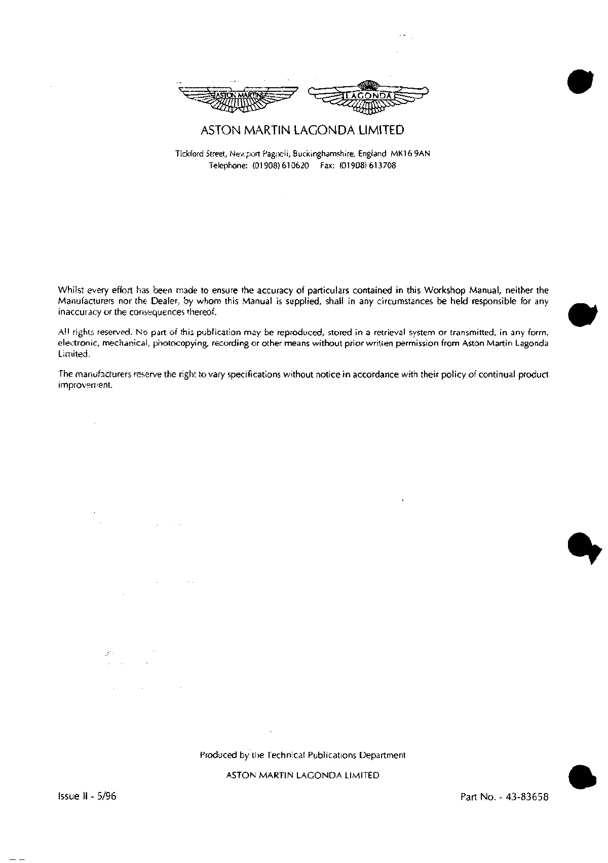 elei:tronic, mechanical, photocopying, recording or other means without prior writien permission from Aston Martin Lagonda