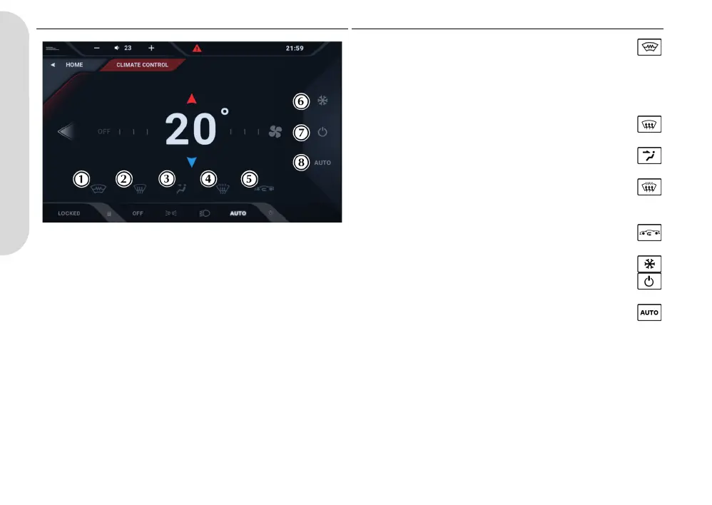 [7] CLIMATE CONTROL ON/OFF: Turns the climate