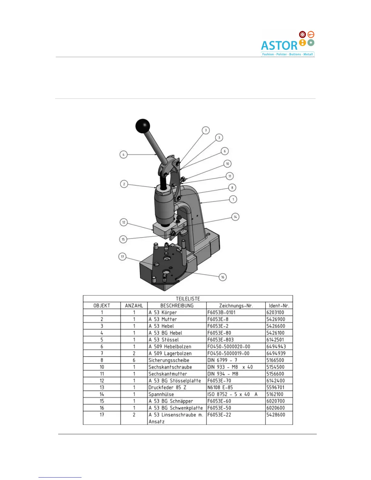 Astor A 53 - 3 Documentation of Accessory Components; Exploded View with Component List