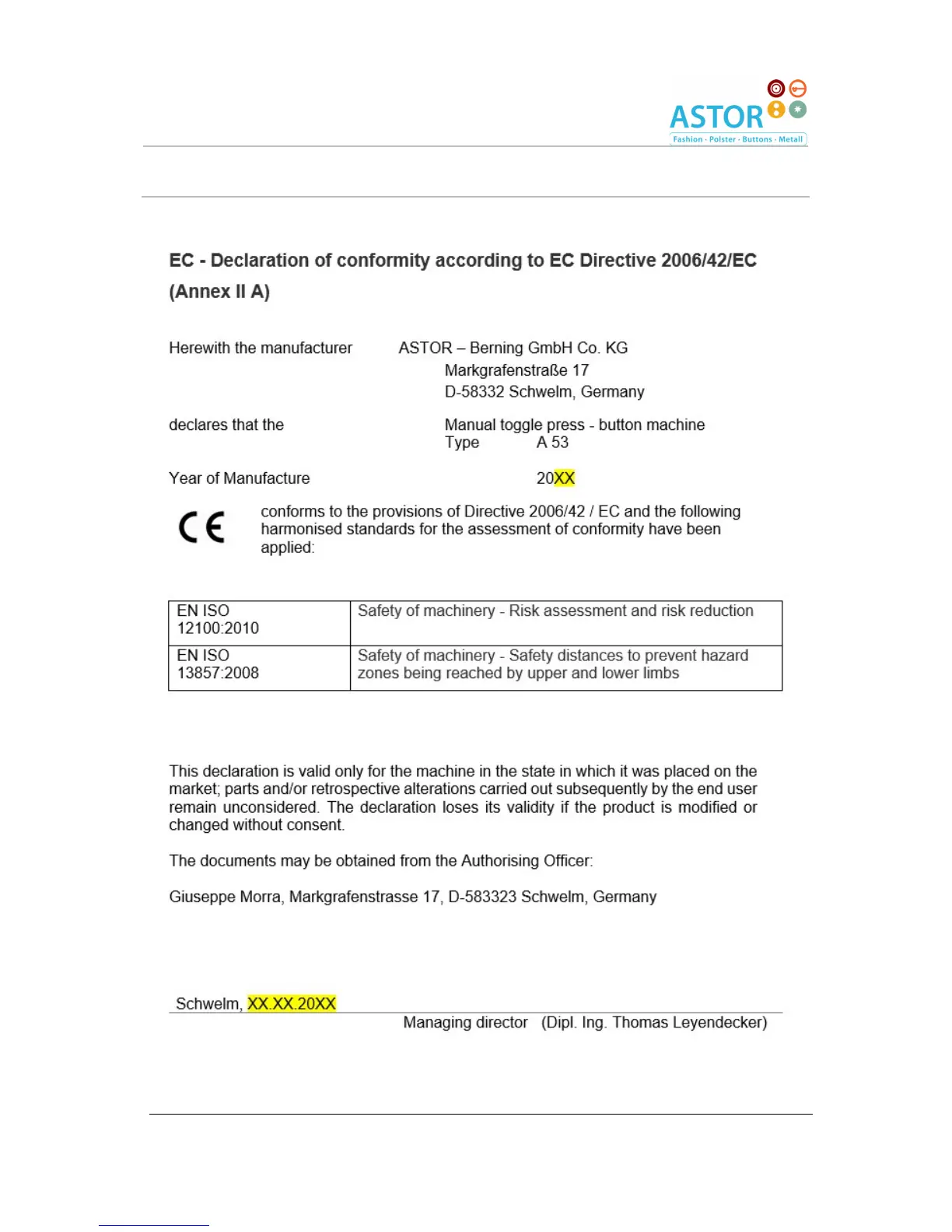 Astor A 53 - Sample - Declaration of Conformity