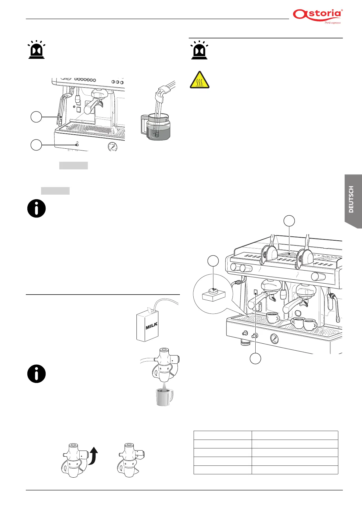• Die Enden der Autosteamerdüse (1) in die Milch tauchen;