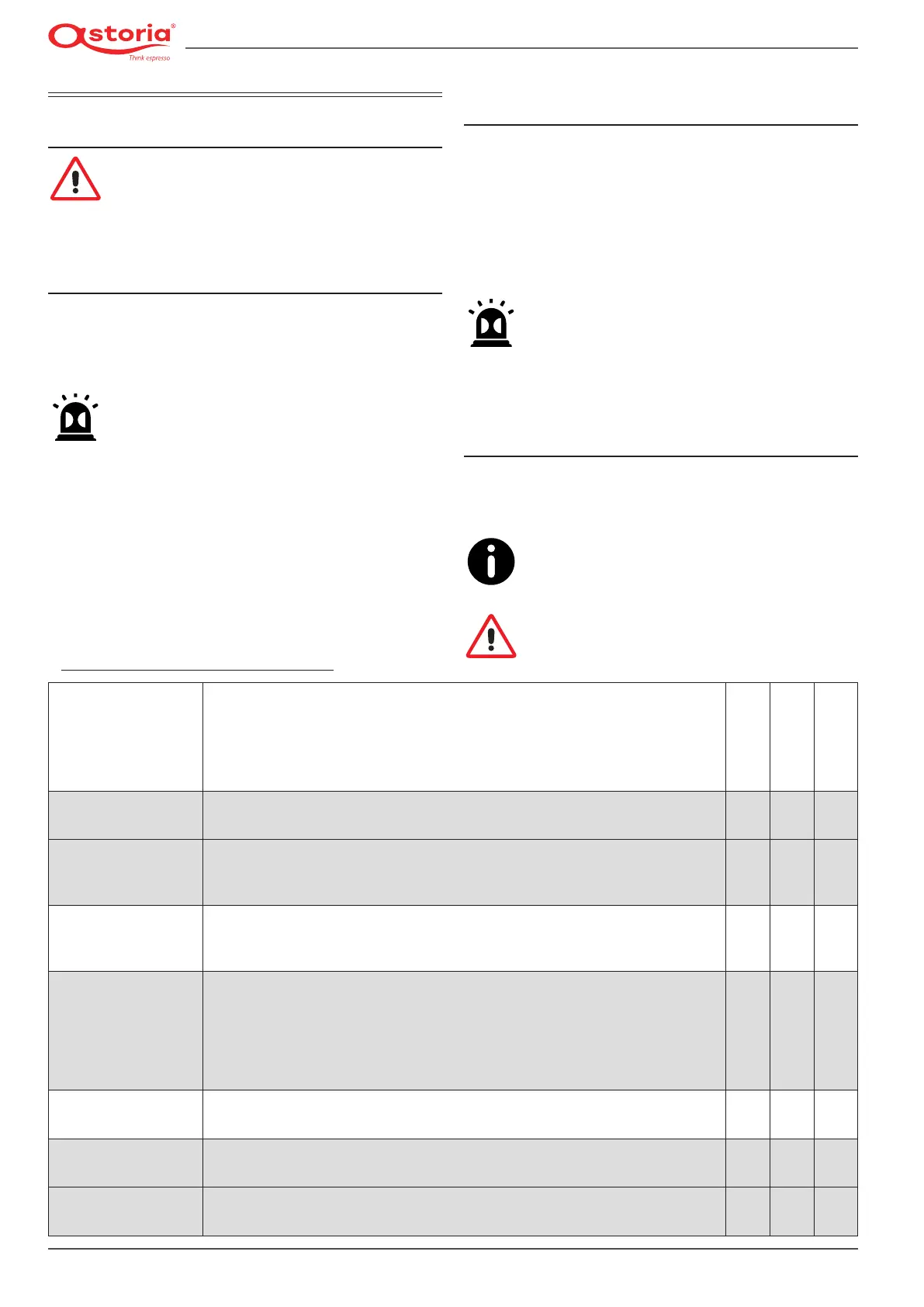 Die „Tabelle für Funktionsstörungen und Abhilfe“ listet die Alarme