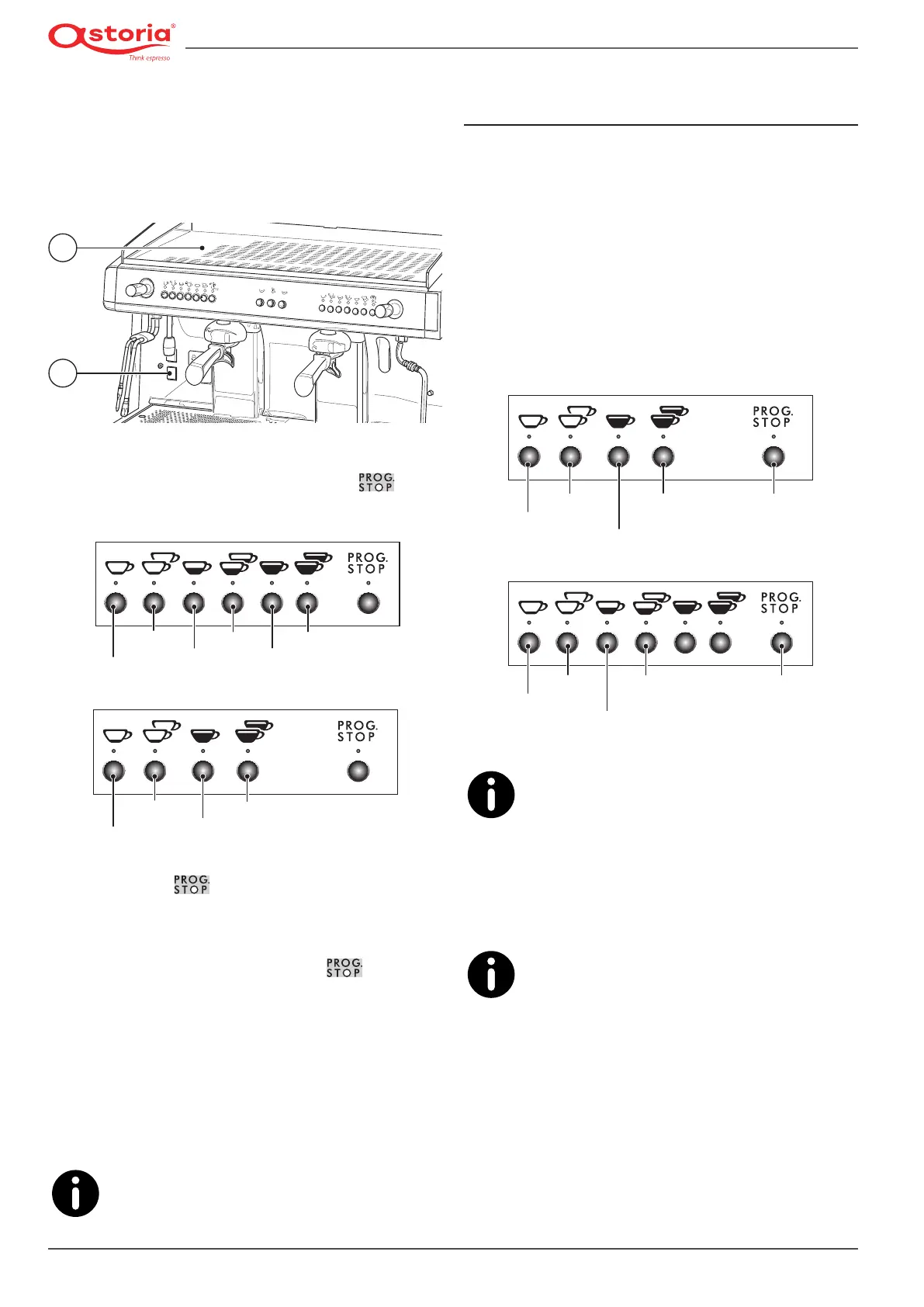 • Place the cups on the cup warmer (1) shelf of the coffee