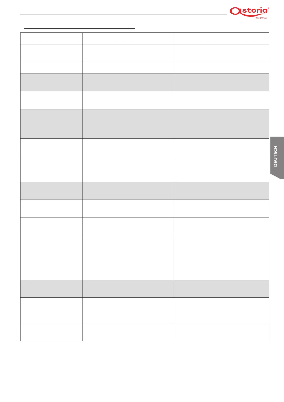 IM BOILER FEHLT WASSER Der Hahn der Wasserleitung ist geschlossen. Den Wasserleitungshahn öffnen.