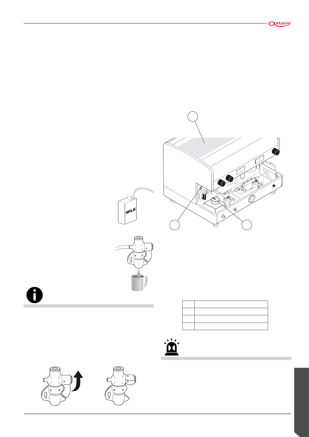 Para obter o leite quente sem espuma, eleve a aleta do