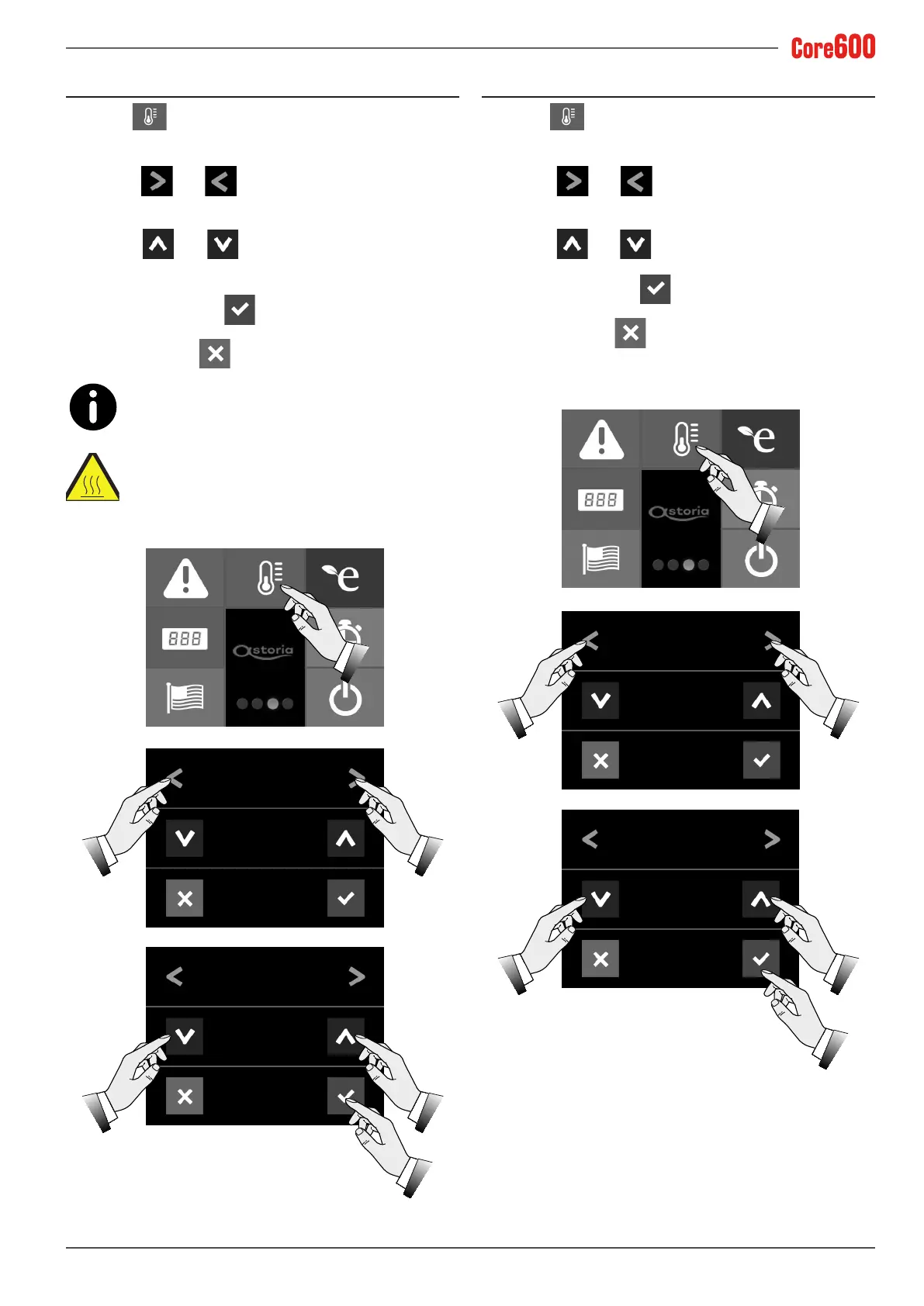 and arrows to set the desired temper-