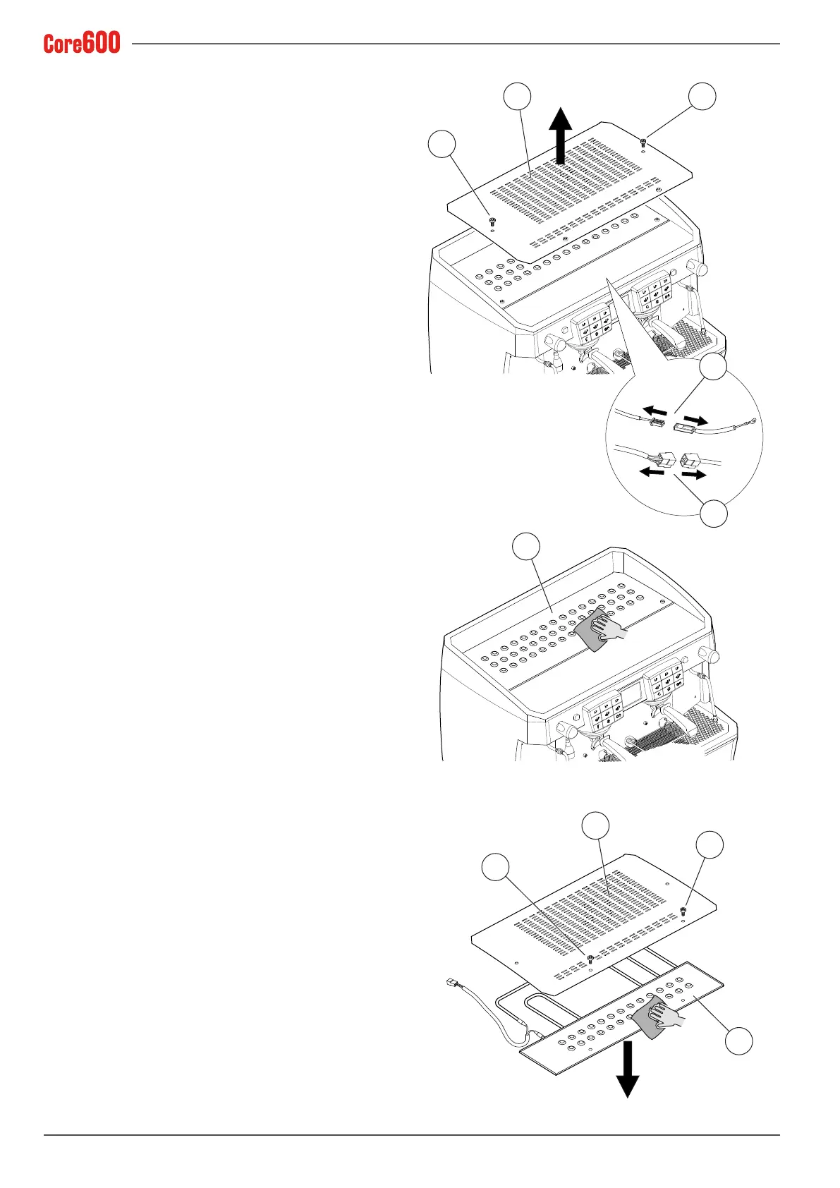 • Lift the upper grille (A) and disconnect the cup warmer