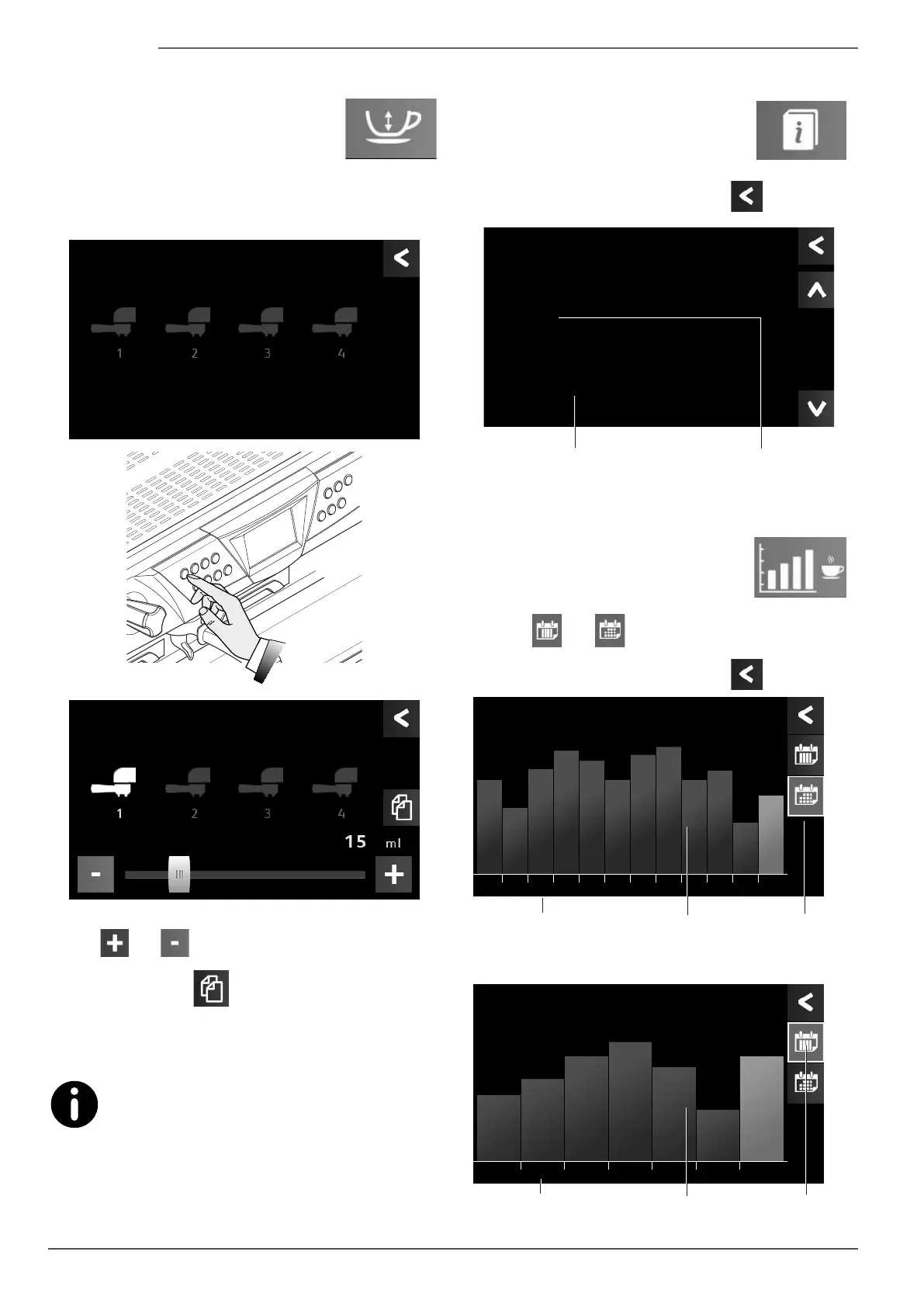 For coffee selections, the set quantity is in ml (mil-