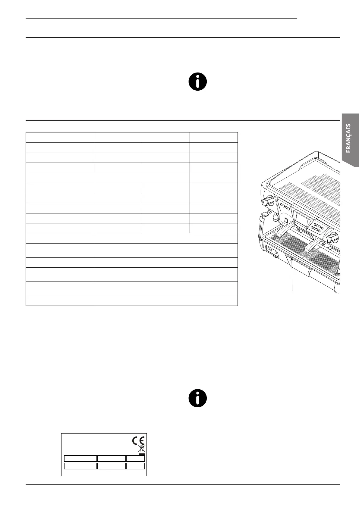 Lesdonnéestechniquesdelamachinesontindiquéesdansletableausuivant: